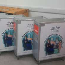 As part of an exciting new project, building upon Transeal’s successes with creating promotional galley equipment coverings for trade shows and staff training events and awards - GateRetail has contracted Transeal Security to design, apply, manage the engineering application (minor modification), rollout and then eventual retrieval and return to regular configuration/service of the modified, promotional carts.